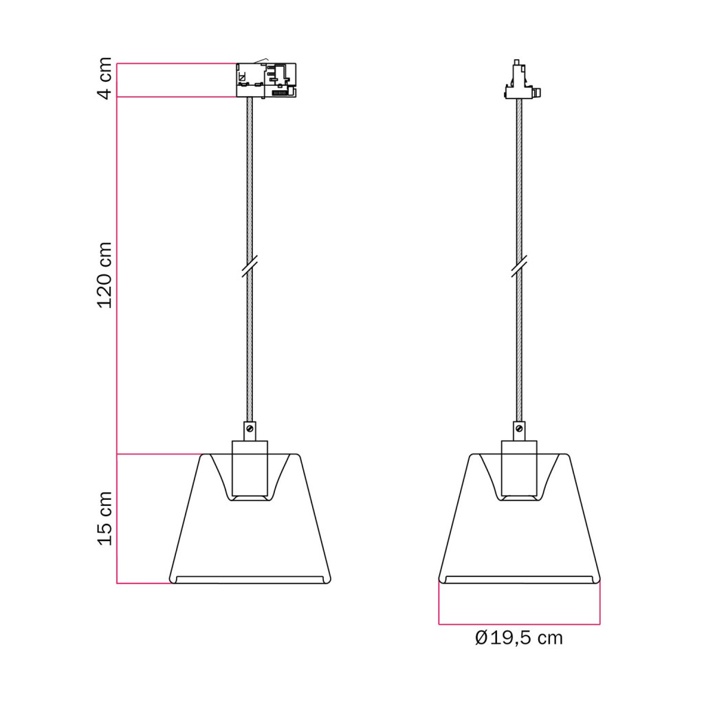 Rail suspension with smoky tapered Ghost bulb