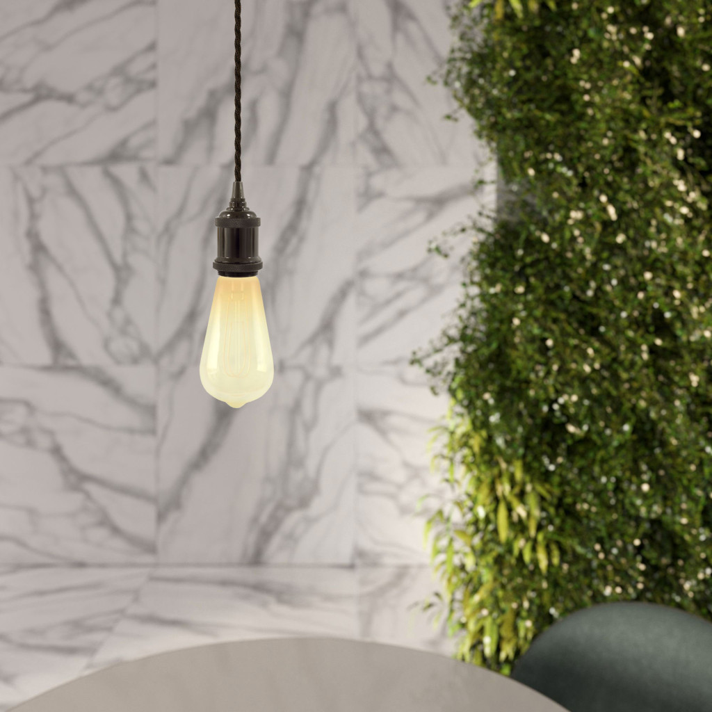 Suspended lamp with twisted textile cable and aluminum lamp holder - Made in Italy