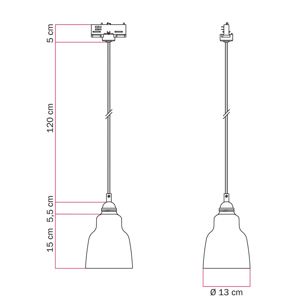 Suspended lamp with Vaso shade and rail adapter