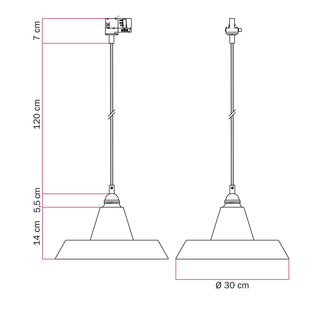 Ceramic pendant lamp for rail, with Industriale lampshade