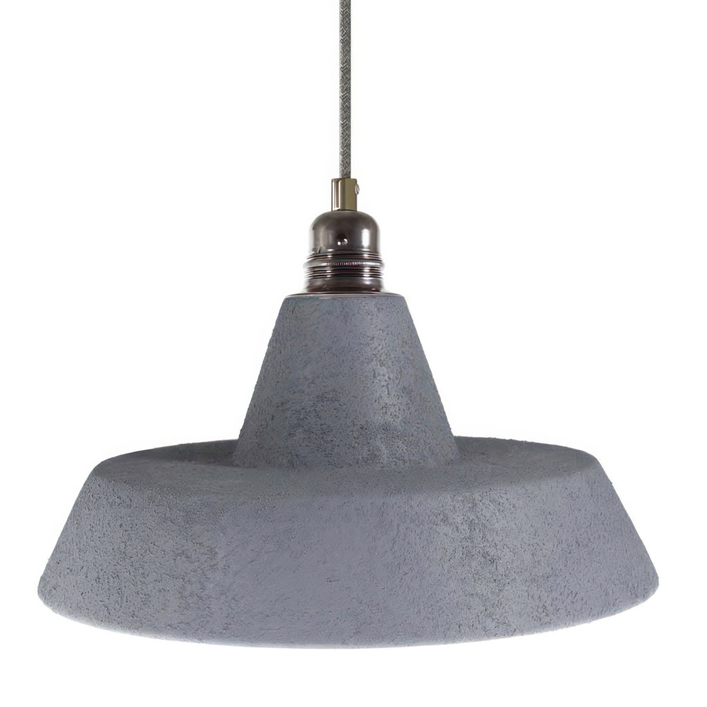 Suspended lamp with textile cable, industrial ceramic lampshade and metal coating - Made in Italy - Bulb included