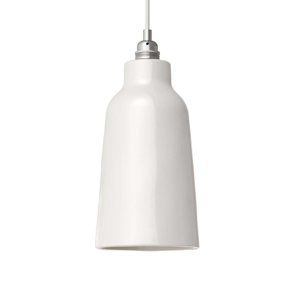 Suspended lamp with textile cable, glass ceramic lampshade and metal details - Made in Italy - Bulb included