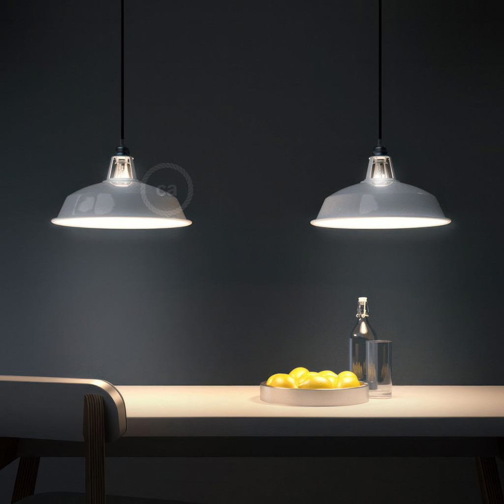 Suspended lamp with textile cable, Harbour lampshade and metal details - Made in Italy - Bulb included
