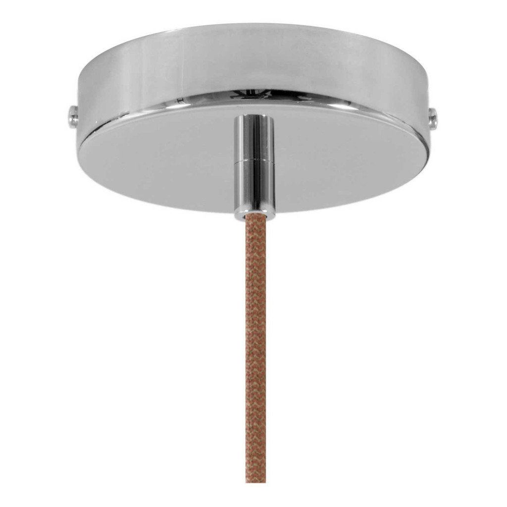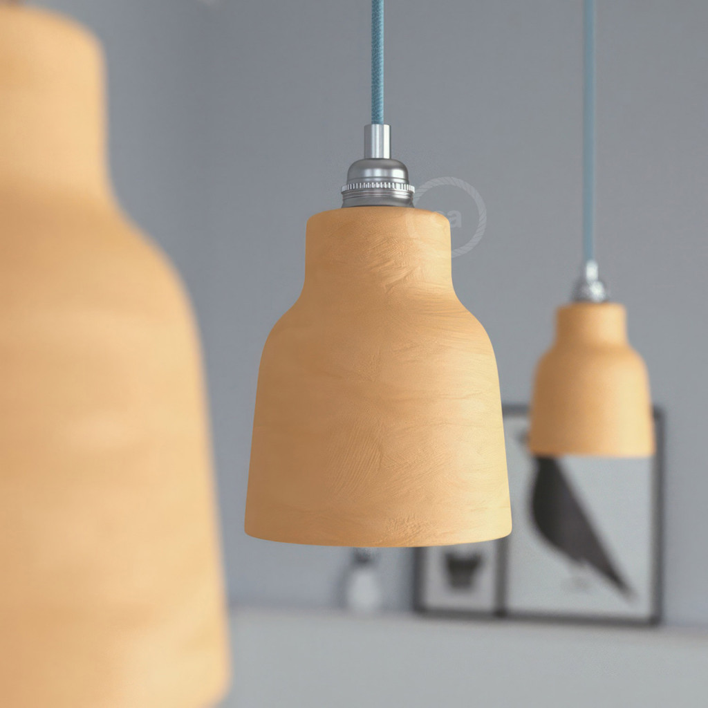 Suspended lamp with textile cable, ceramic lampshade and metal details - Made in Italy - Bulb included