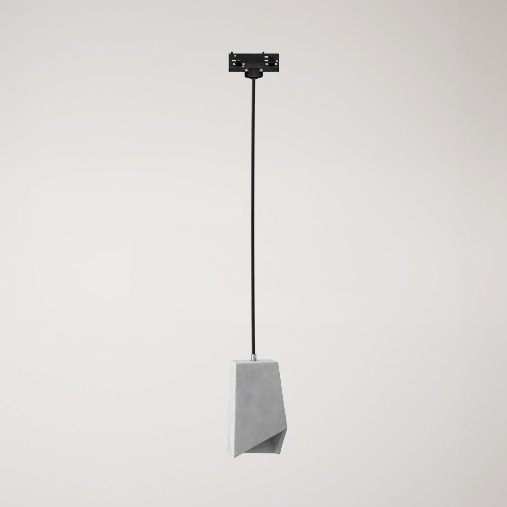 Suspended lamp for rails, Prisma concrete lampshade