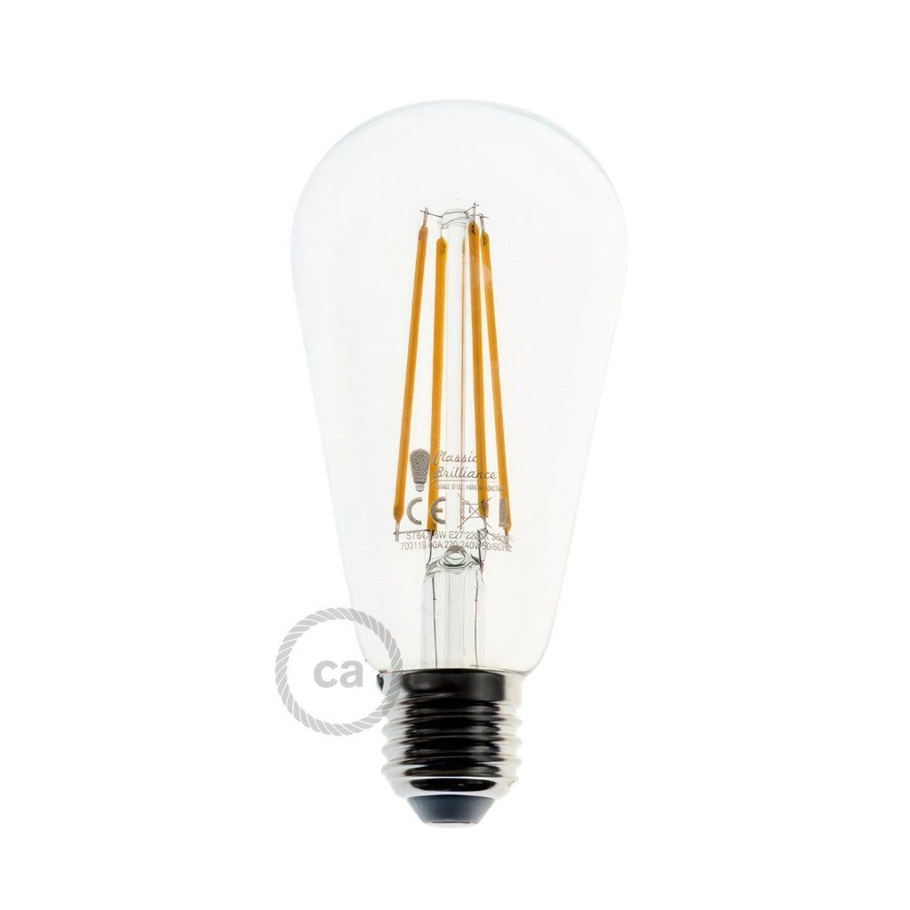 Bulb [BB-T02]: LED, transparent, ST64, 7 W, 806 Lm, 2700 K, E27, E, width 64 mm, height 145 mm, dimmable