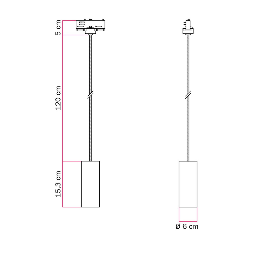 Suspended lamp Tub-E14 with shade for rail