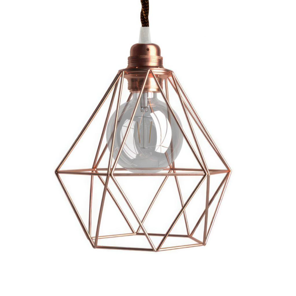 Suspended lamp with textile cable, diamond-shaped lampshade and metal details - Made in Italy - Bulb included