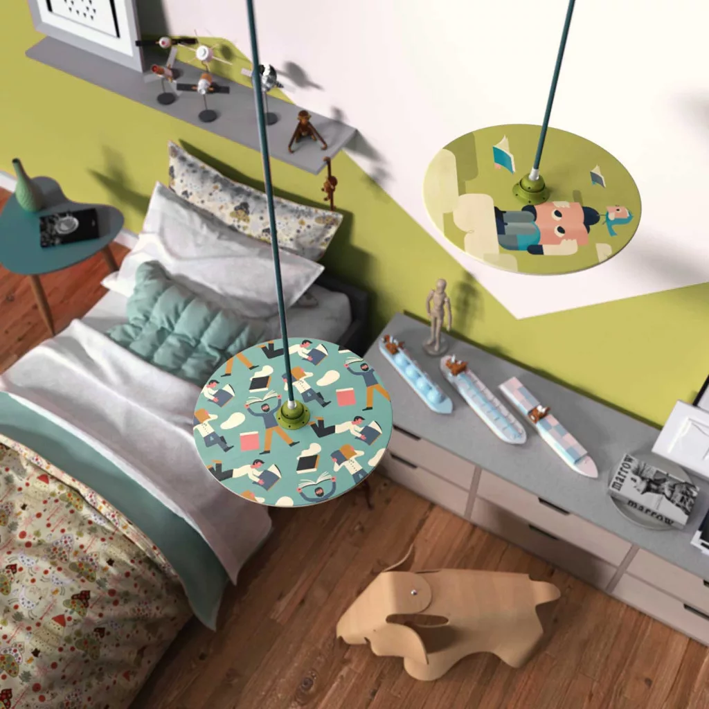 1 double-sided wooden UFO lampshade in the selected design, ø 330 mm, H 5 mm
