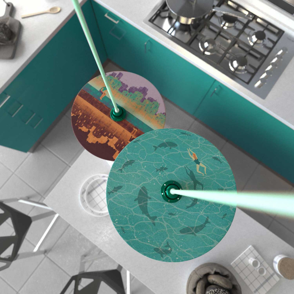 1 double-sided wooden UFO lampshade in the selected design, ø 330 mm, H 5 mm