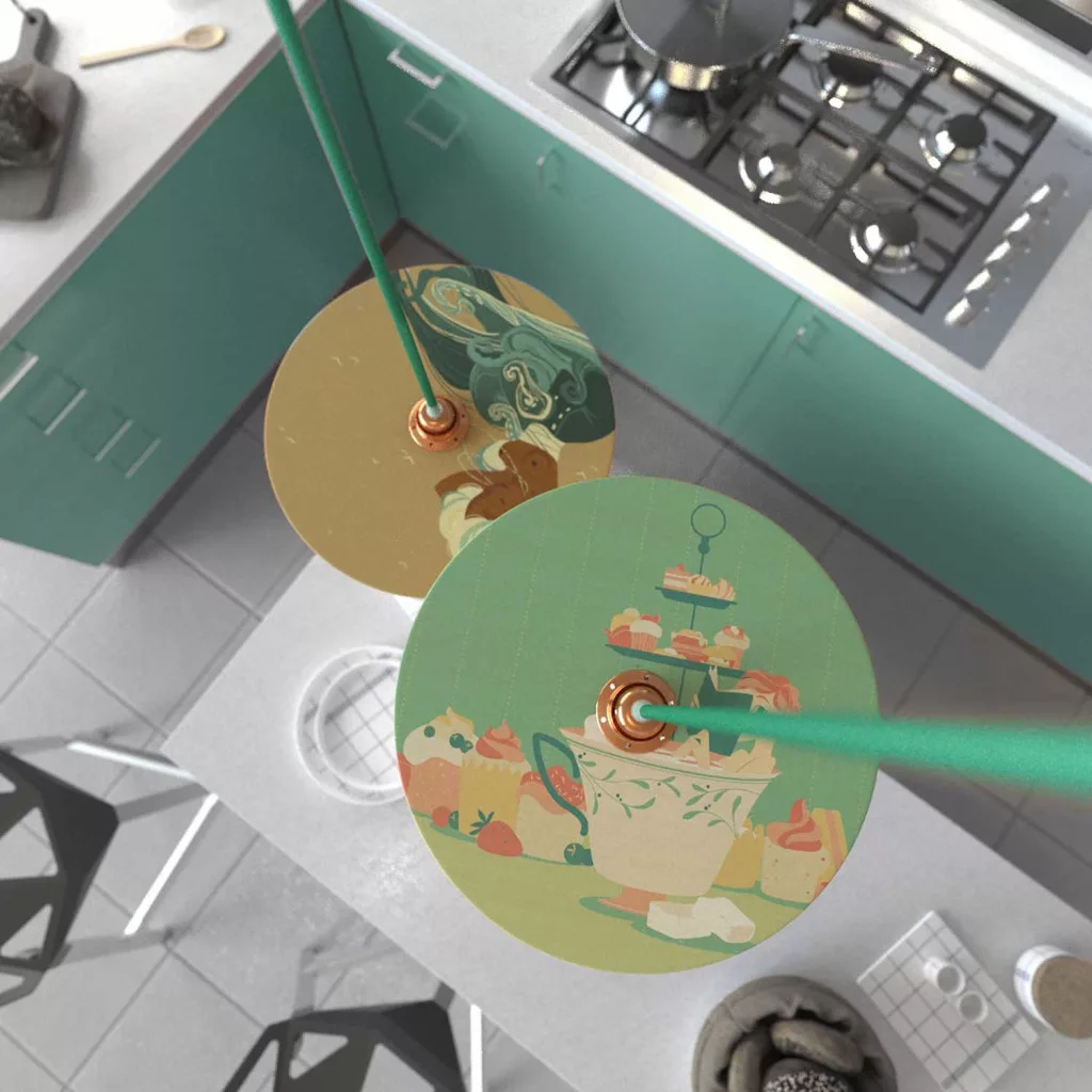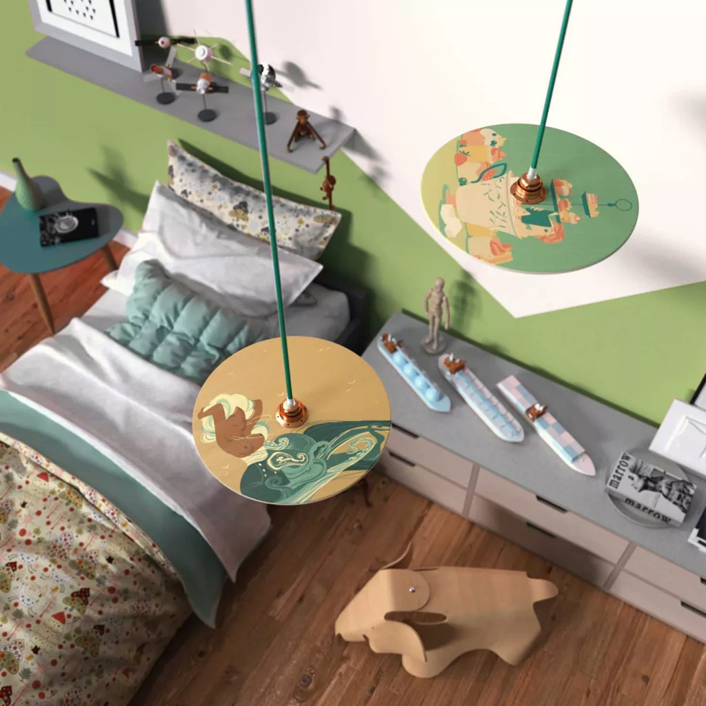 1 double-sided wooden UFO lampshade in the selected design, ø 330 mm, H 5 mm