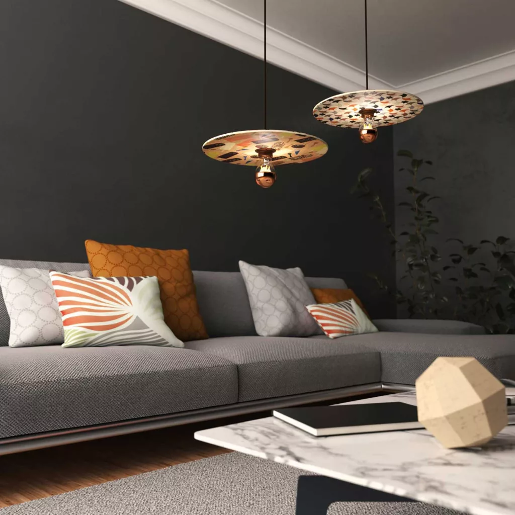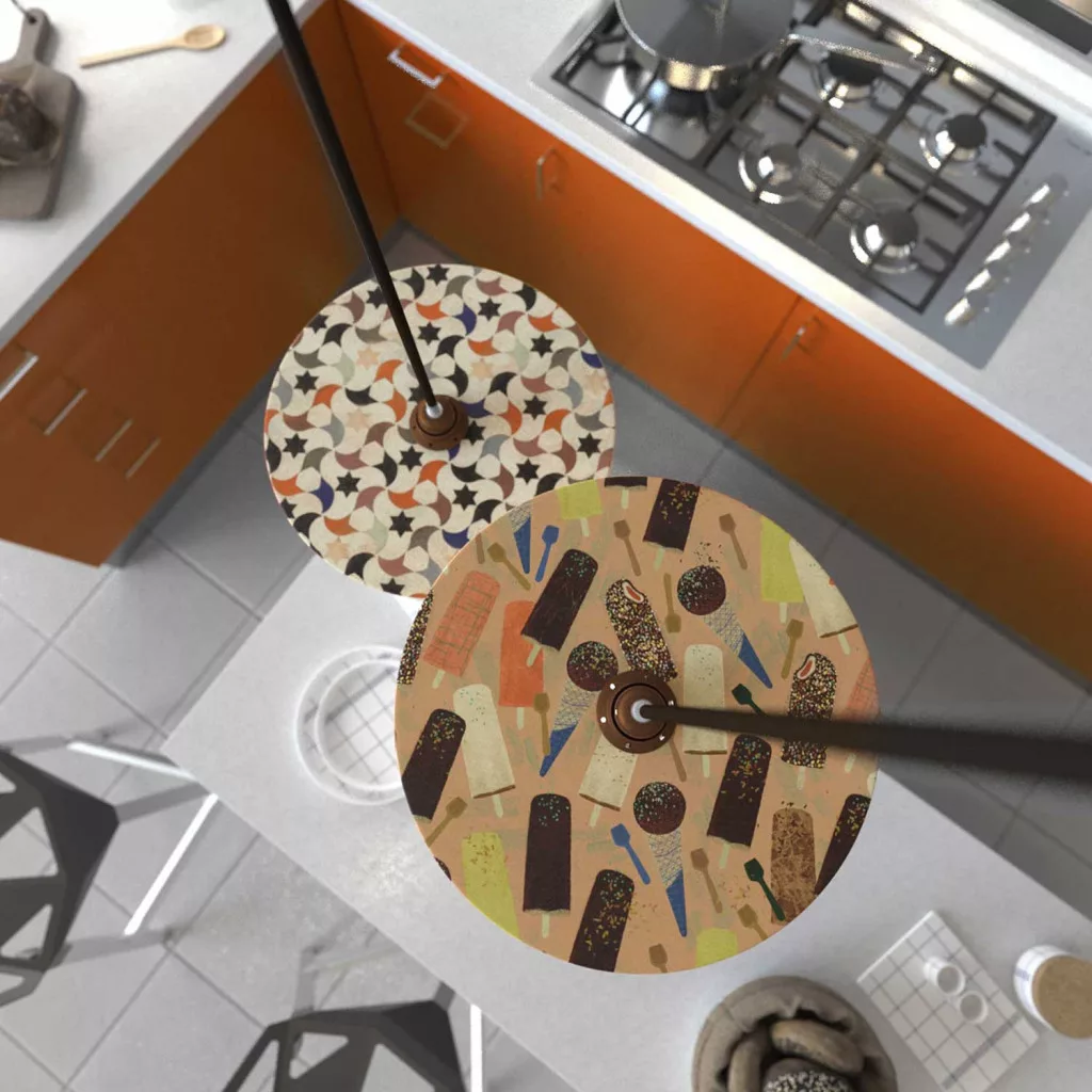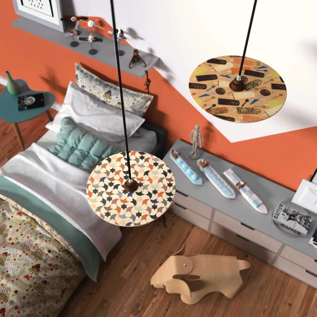 1 double-sided wooden UFO lampshade in the selected design, ø 330 mm, H 5 mm