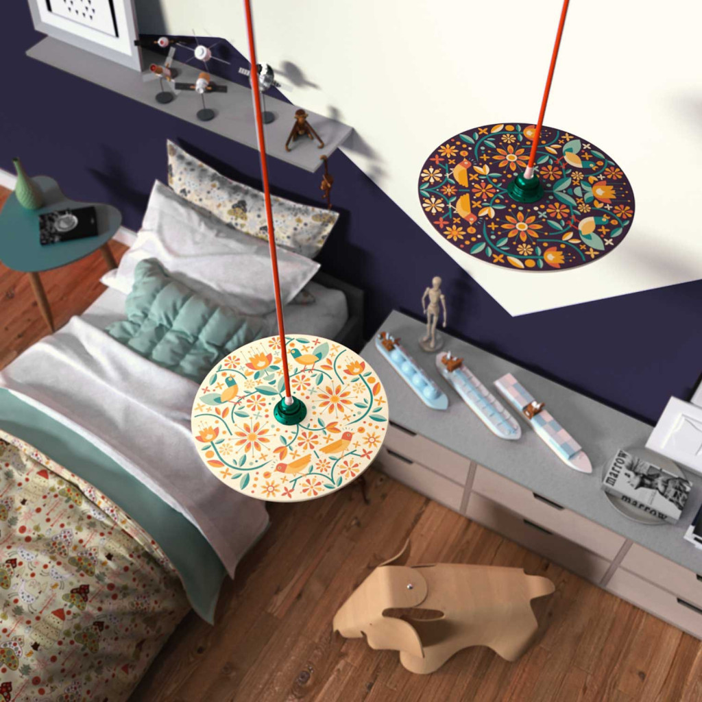 1 double-sided wooden UFO lampshade in the selected design, ø 330 mm, H 5 mm