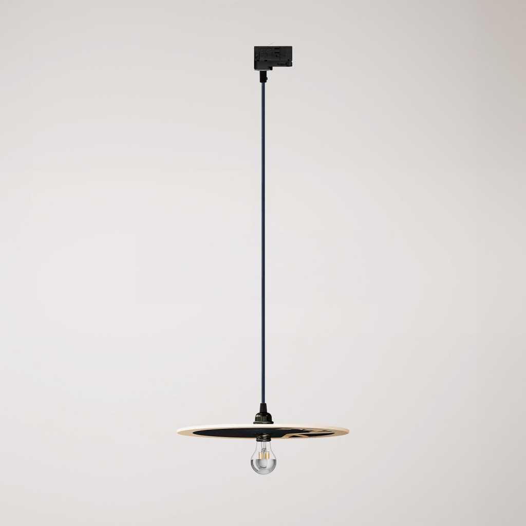 Rail-mounted pendant lamp UFO with double-sided wooden shade