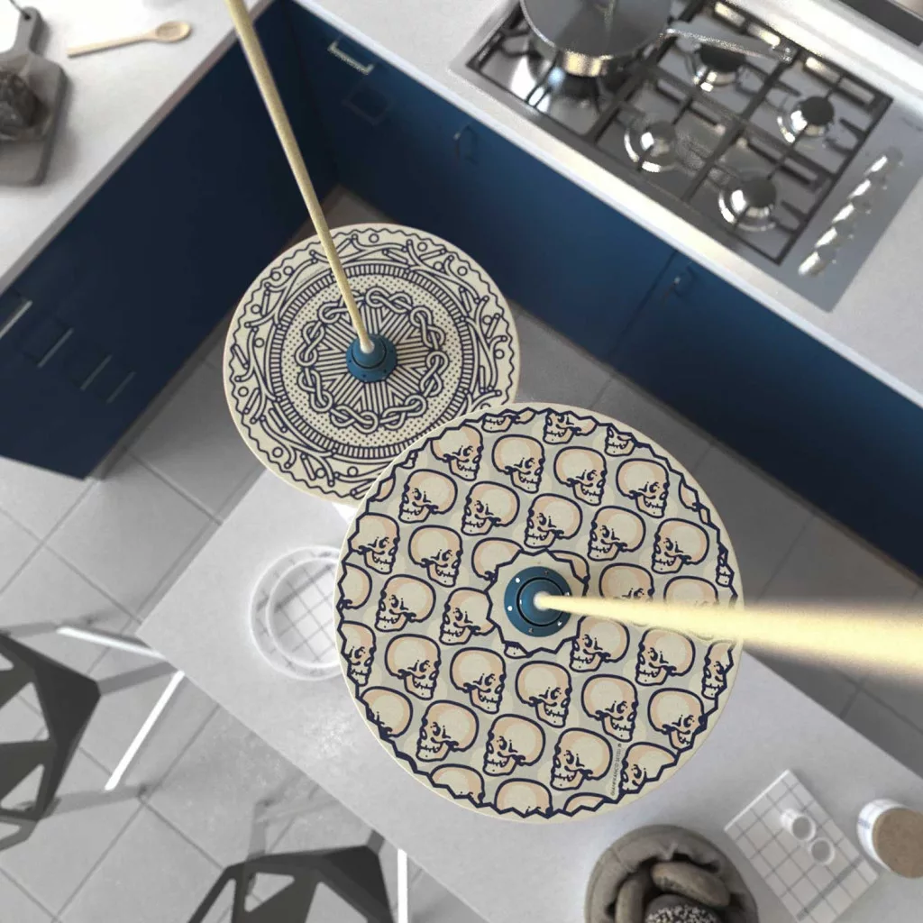 1 double-sided wooden UFO lampshade in the selected design, ø 330 mm, H 5 mm