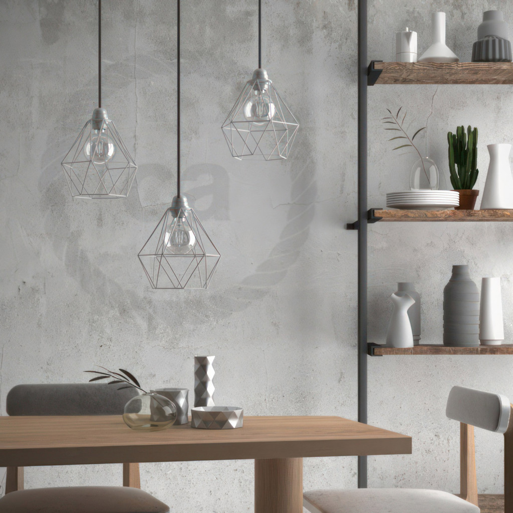 Suspended lamp with textile cable, diamond-shaped lampshade and metal details - Made in Italy - Bulb included