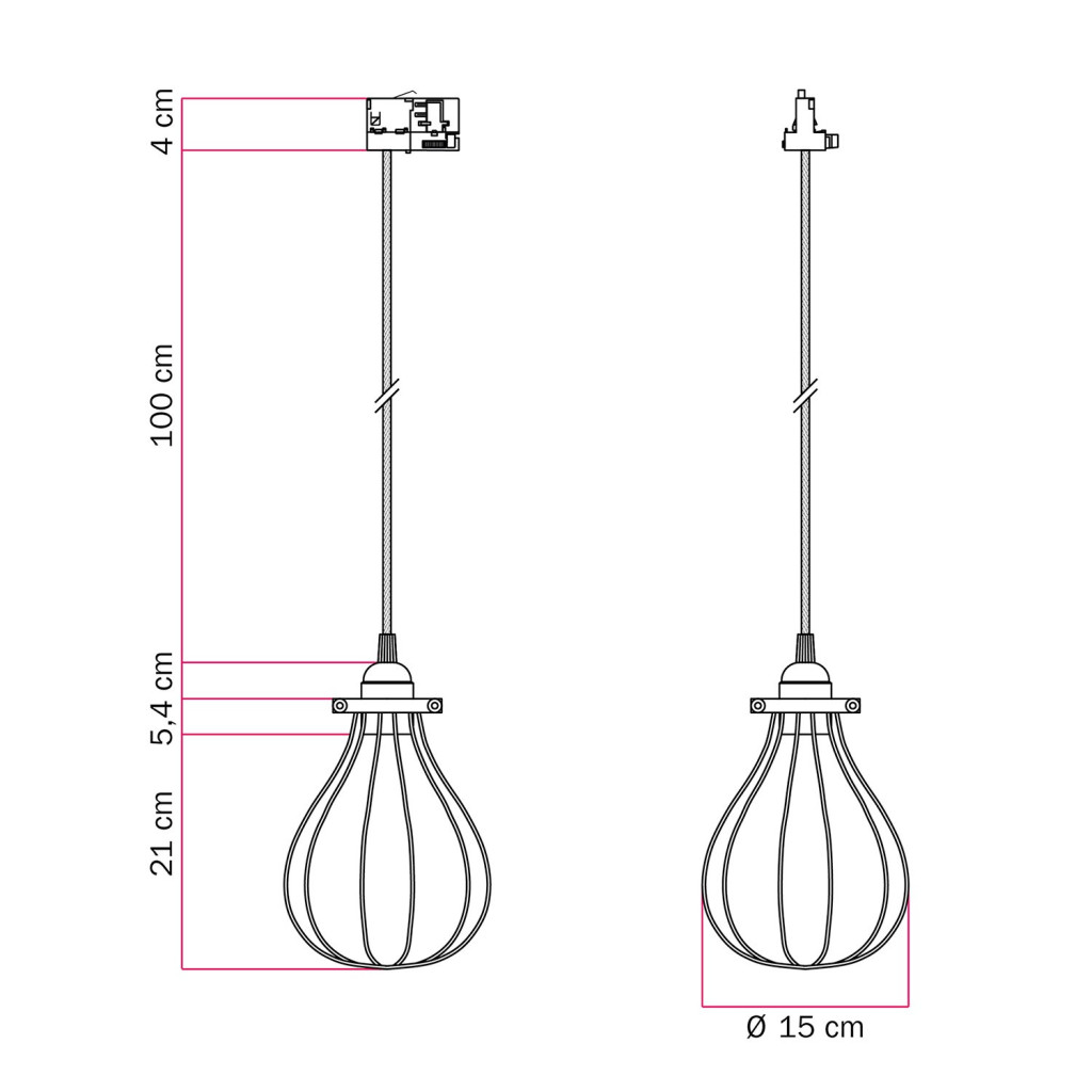 Suspension with teardrop-shaped lampshade for rail