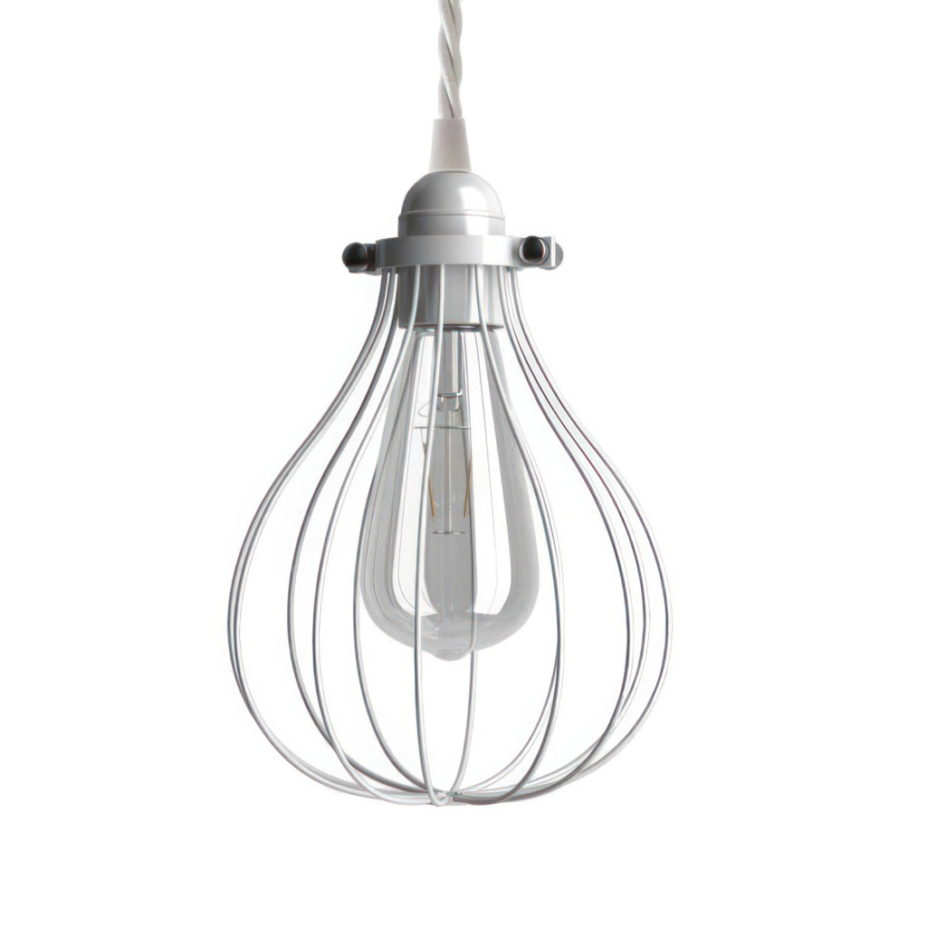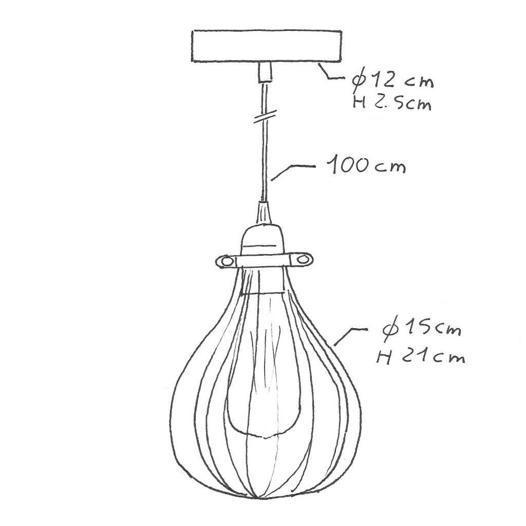 Suspended lamp with textile cable, drop-shaped lampshade and metal details - Made in Italy - Bulb included