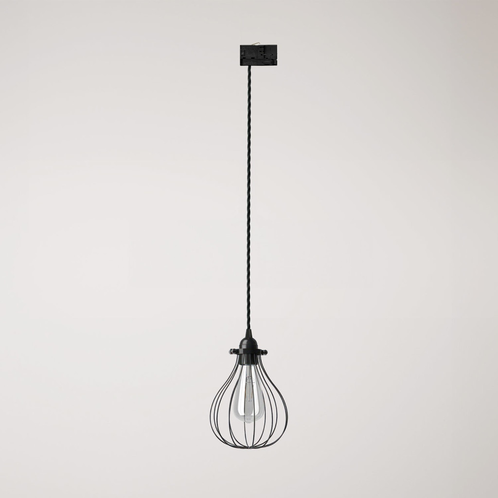 Suspension with teardrop-shaped lampshade for rail
