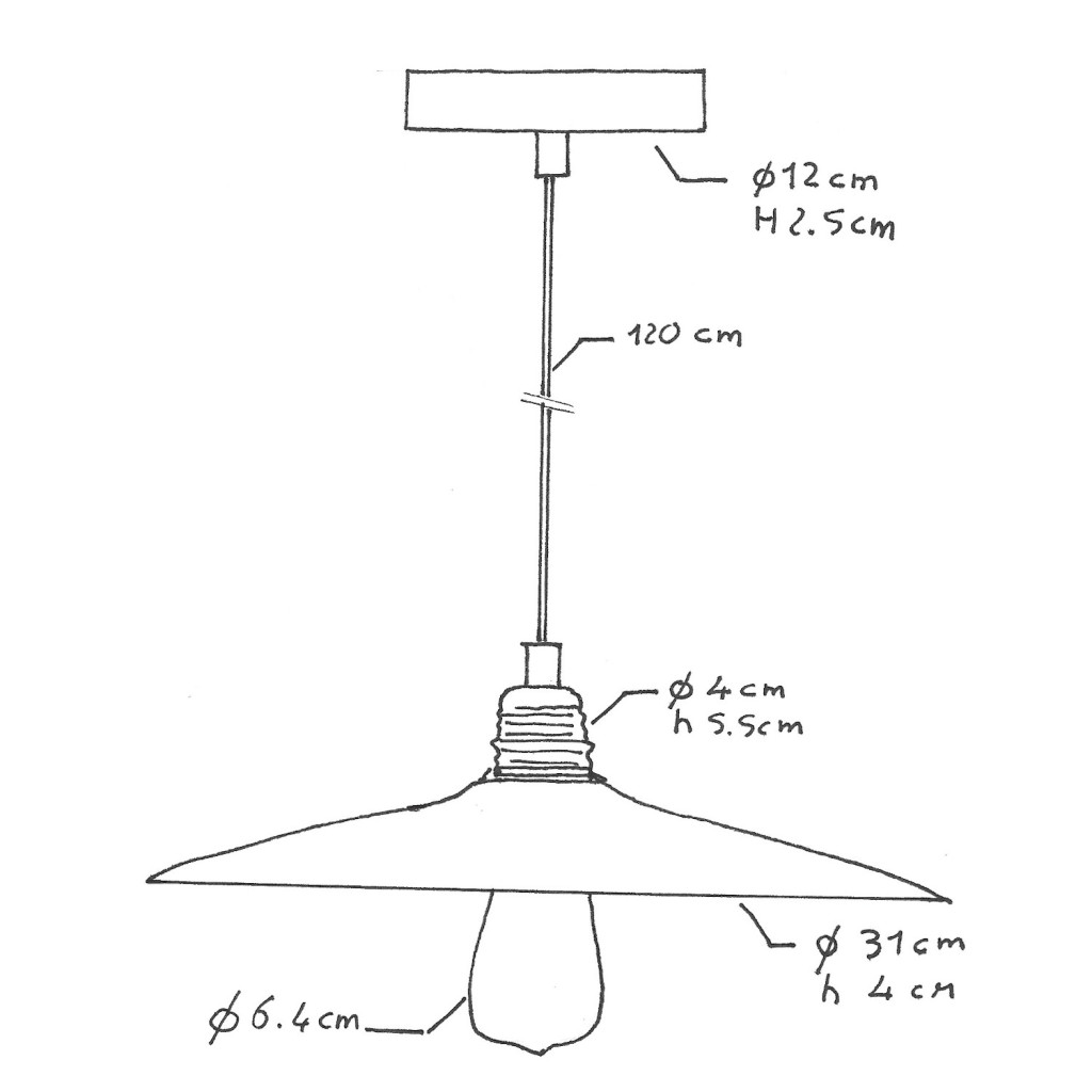 Suspended lamp with textile cable, ceramic lampshade and metal details - Made in Italy - Bulb included