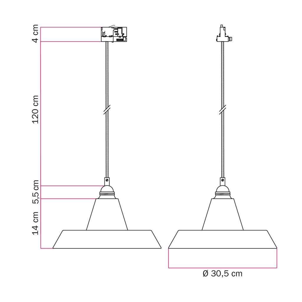 Ceramic pendant lamp for rail, with Industriale lampshade