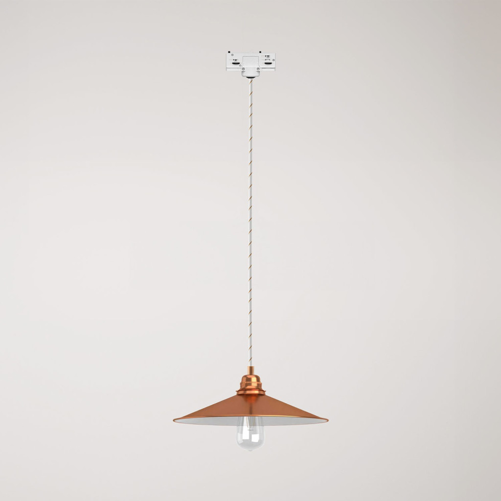 Swing pendant lamp with shade on rail