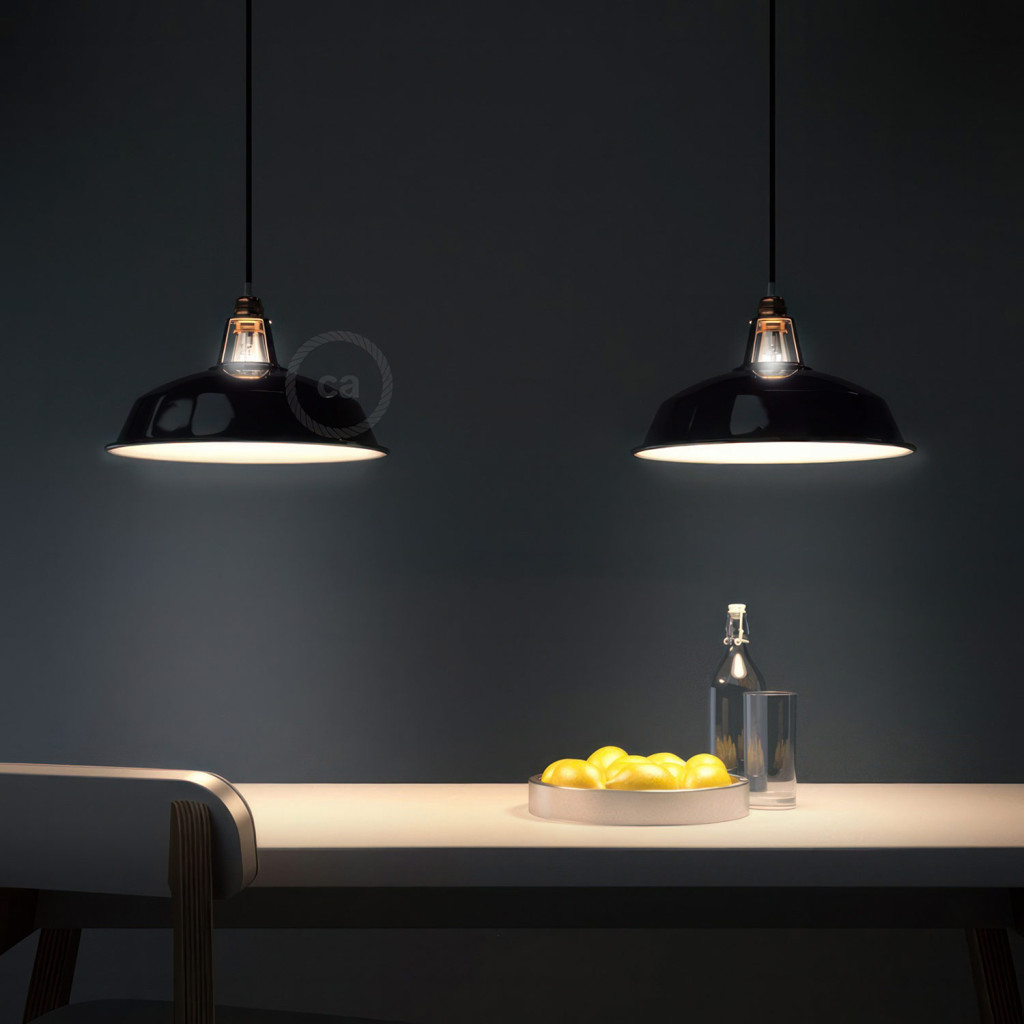 Suspended lamp with textile cable, Harbour lampshade and metal details - Made in Italy - Bulb included