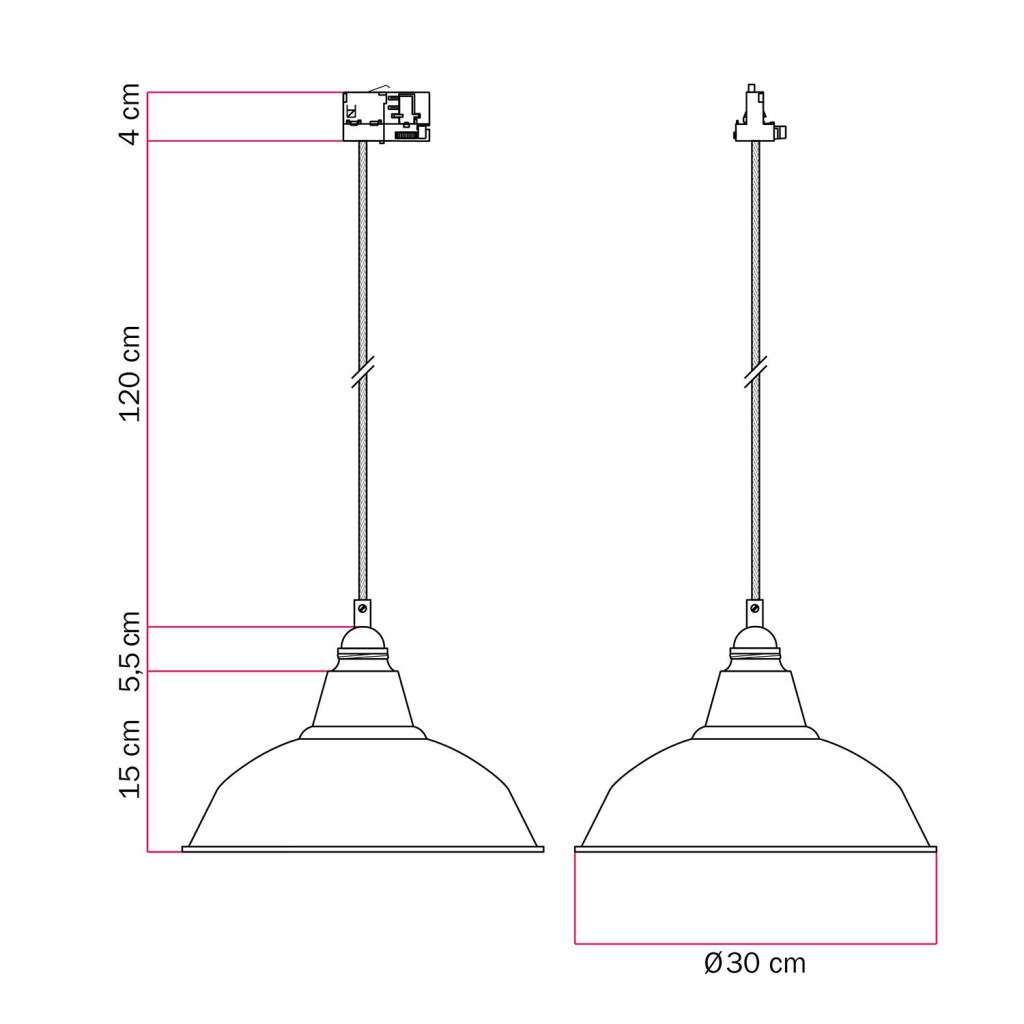 Bistrot pendant lamp with rail bracket