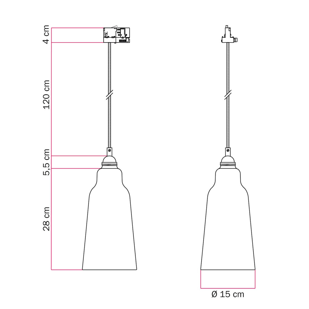 Suspended lamp Bottiglia with shade and rail adapter