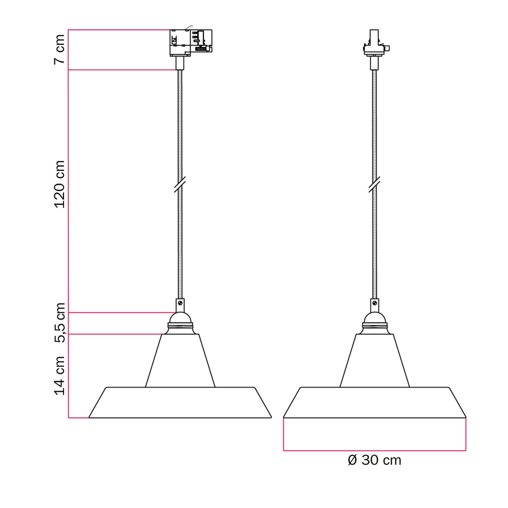 Ceramic pendant lamp for rail, with Industriale lampshade