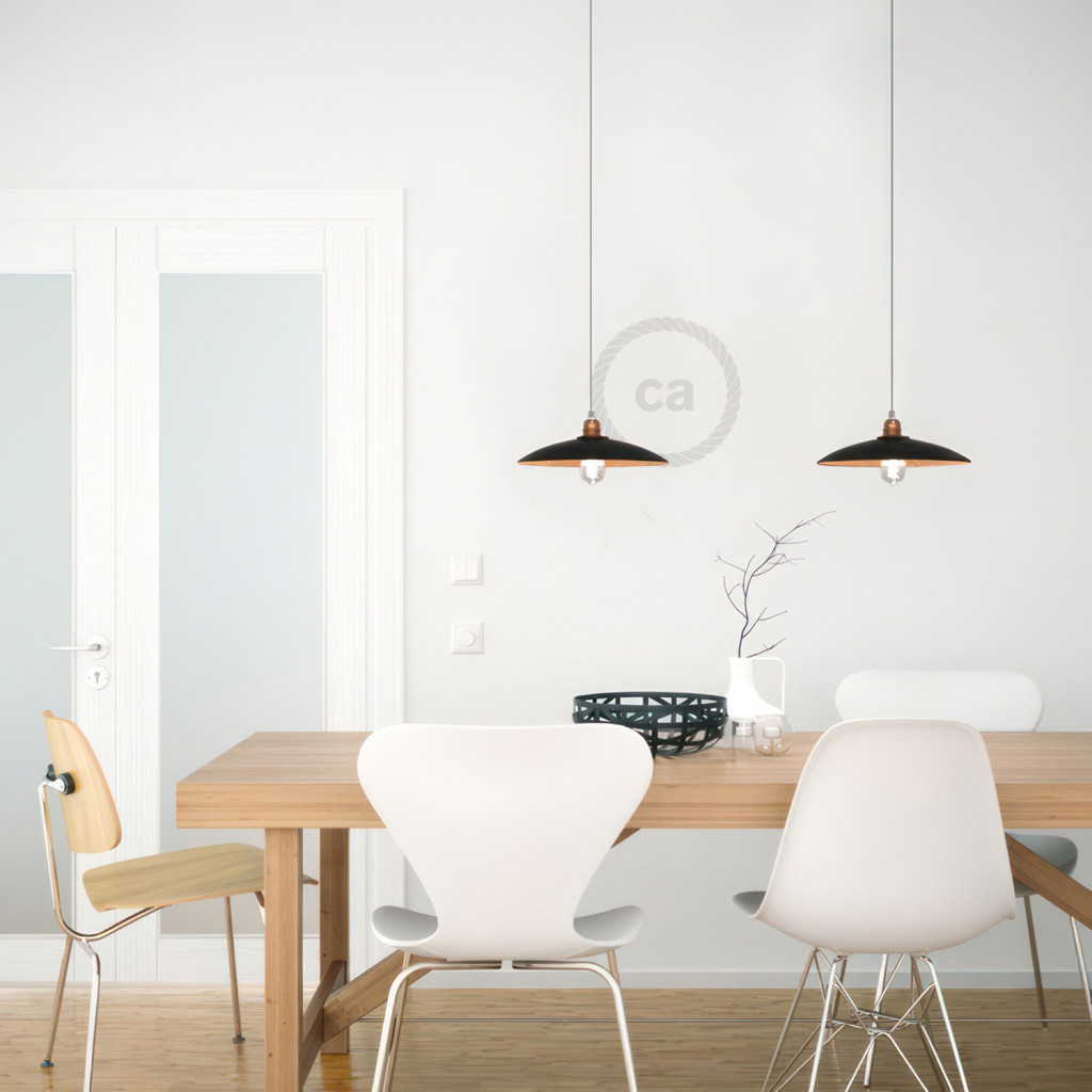 Suspended lamp with textile cable, ceramic lampshade and metal details - Made in Italy - Bulb included
