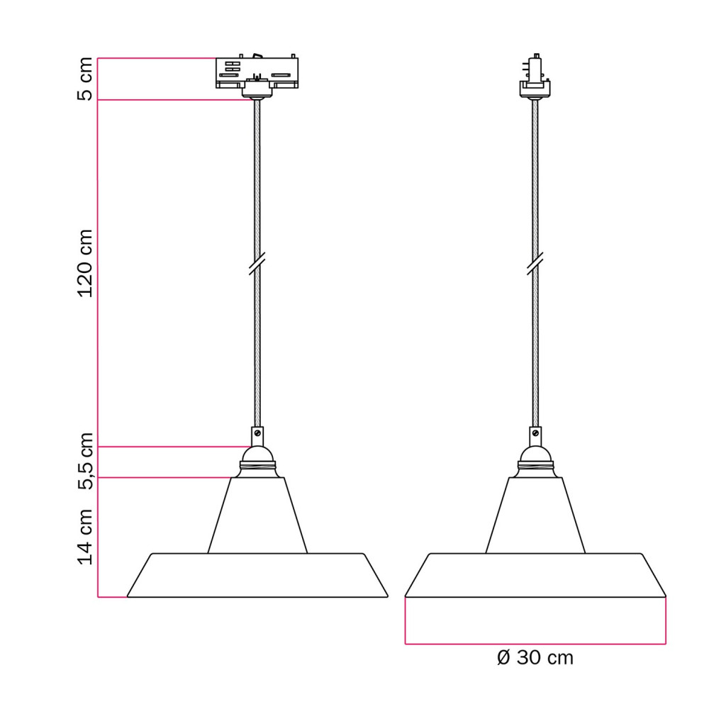 Ceramic pendant lamp for rail, with Industriale lampshade