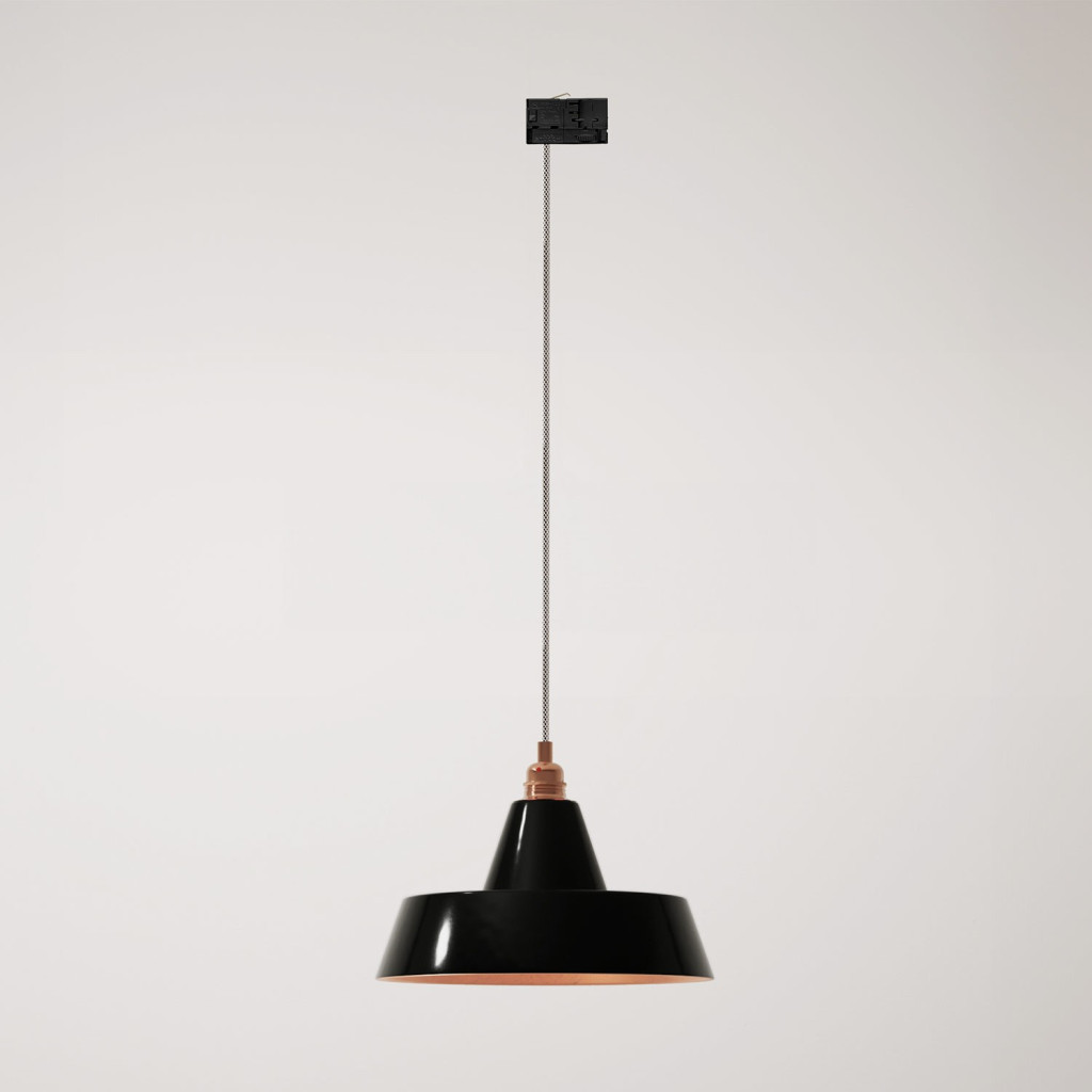 Ceramic pendant lamp for rail, with Industriale lampshade