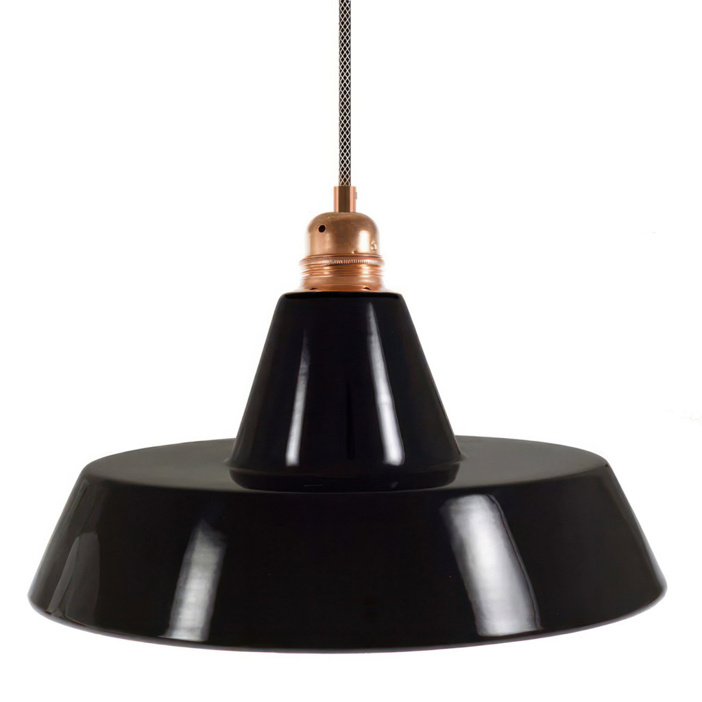 Suspended lamp with textile cable, industrial ceramic lampshade and metal coating - Made in Italy - Bulb included