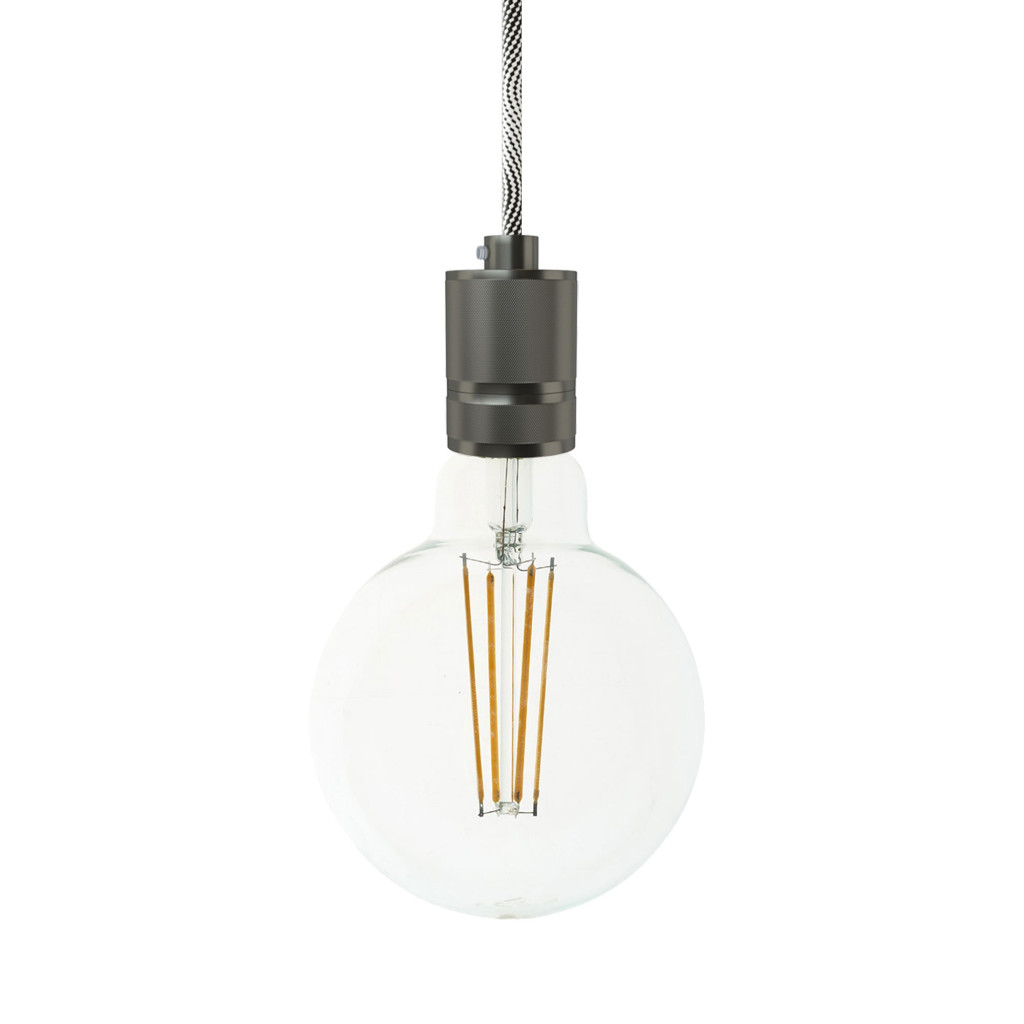 Suspended lamp with textile cable and engraved aluminum lamp holder - Made in Italy - Bulb included