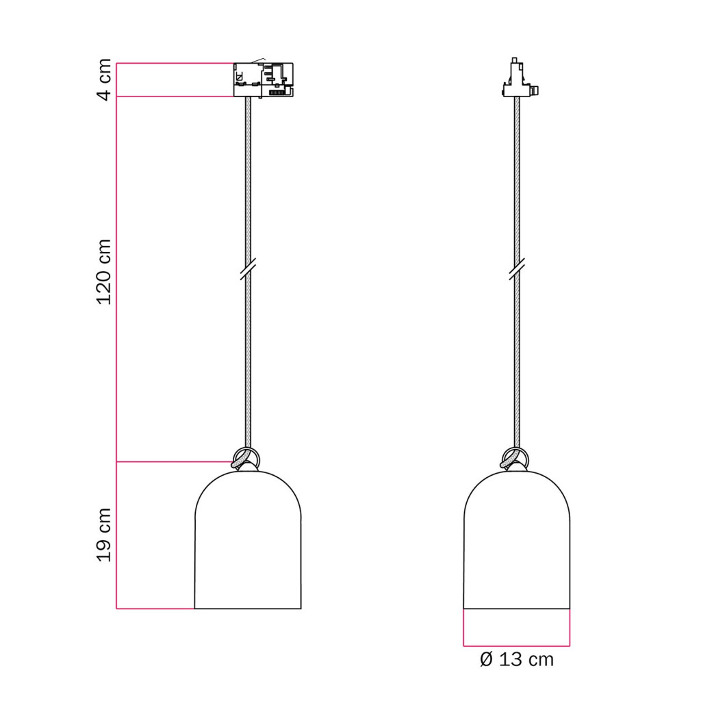 Rail-mounted lamp with ceramic mini Campana lampshade
