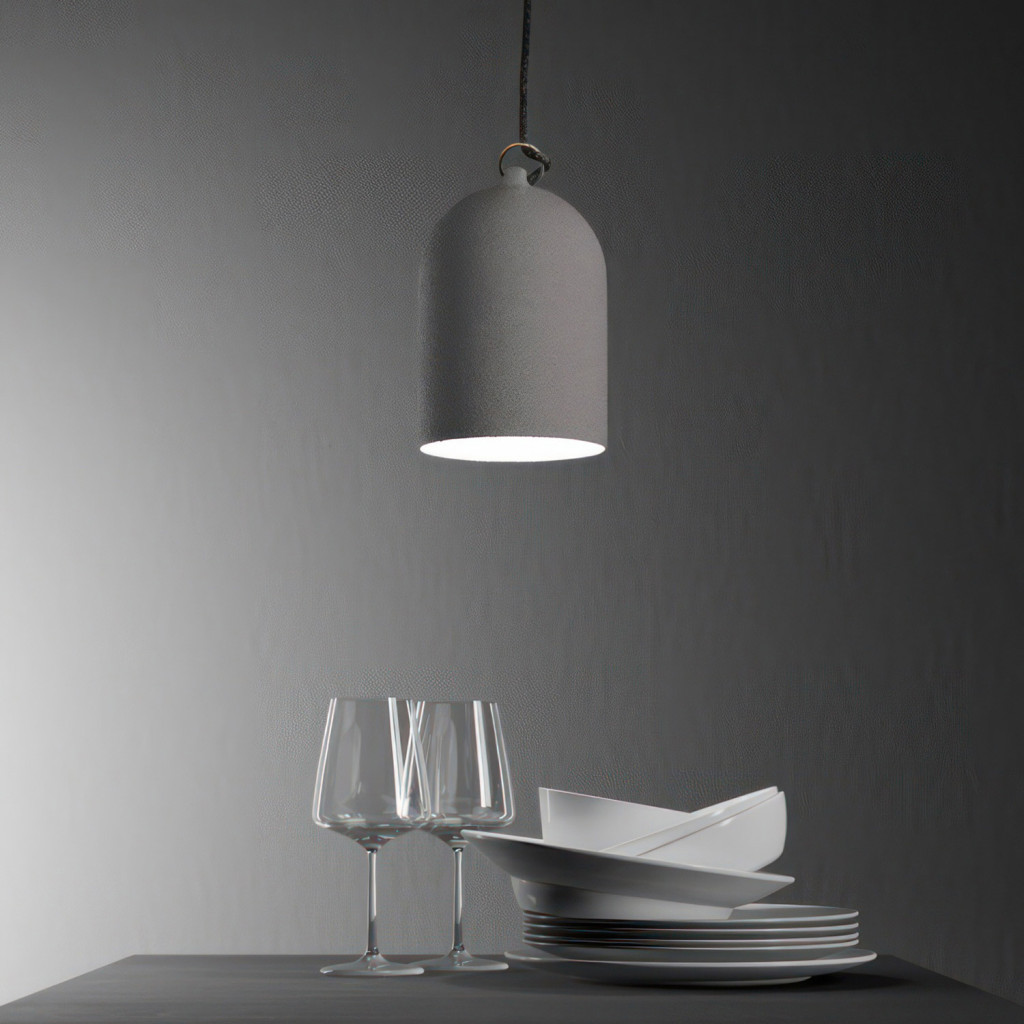 Suspended lamp with textile cable and lampshade Mini Bell XS ceramic lampshade - Made in Italy - Bulb included