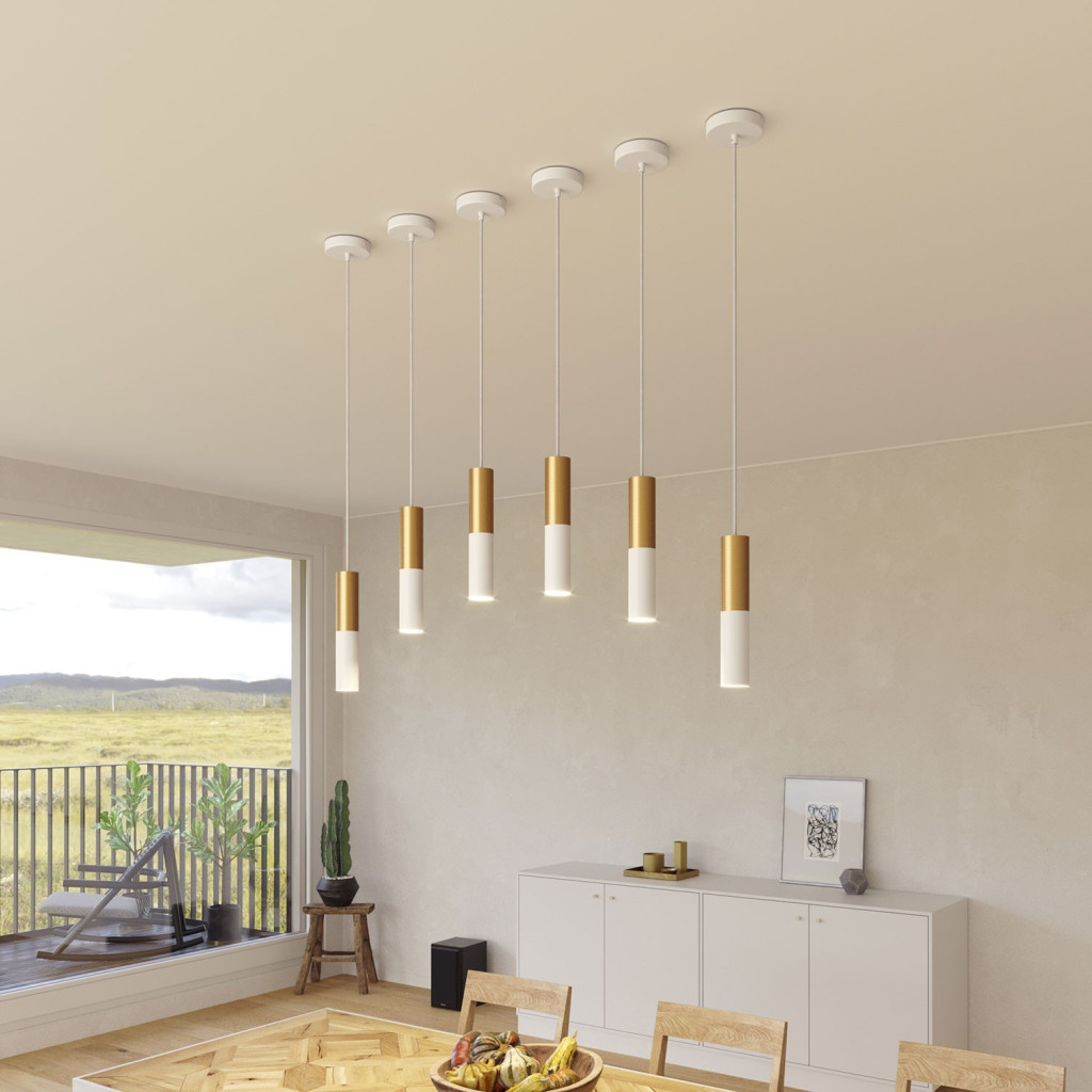 Suspended lamp with fabric cables and Tub-E14 double lampshade