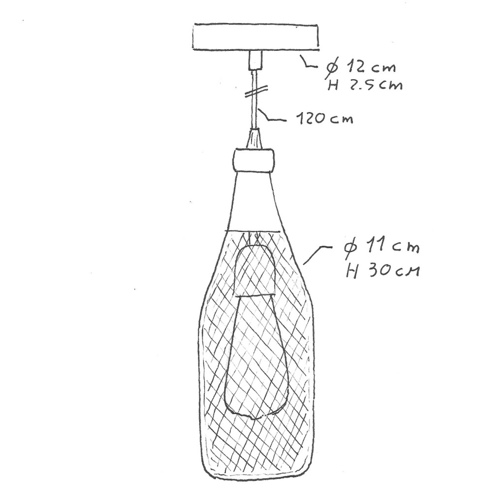 1 Magnum bottle metal lampshade in the selected design, ø 110 mm, H 300 mm