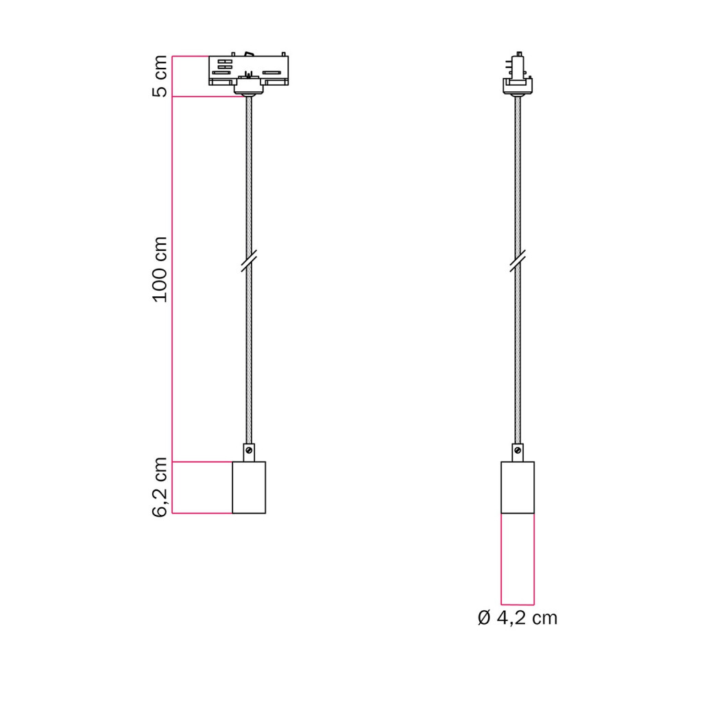 1 cylindrical E27 max. 57 W metal lamp holder in the selected design