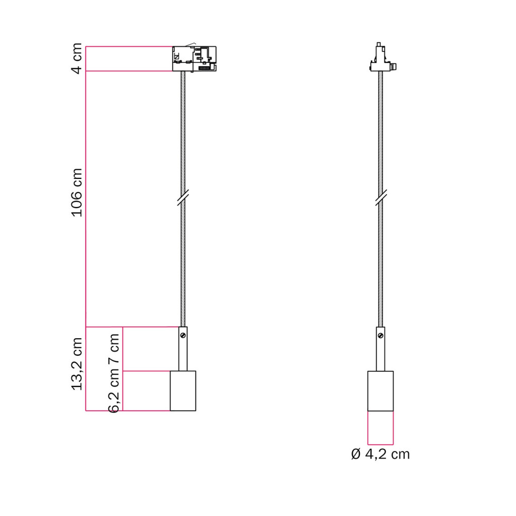 Rail-mounted pendant lamp with 7 cm cable clamp