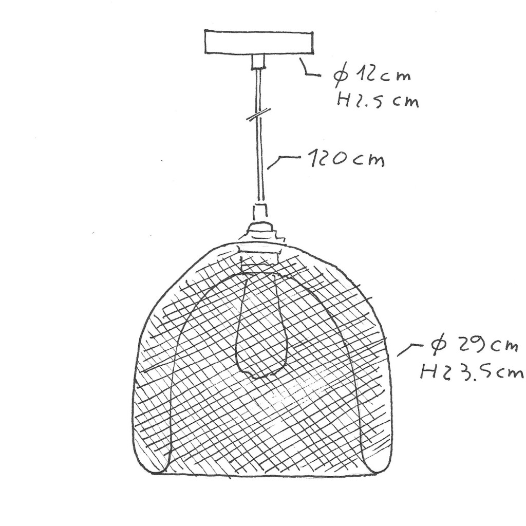 Suspended lamp with textile cable, Ghostbell XL cage lampshade and metal details - Made in Italy - Bulb included