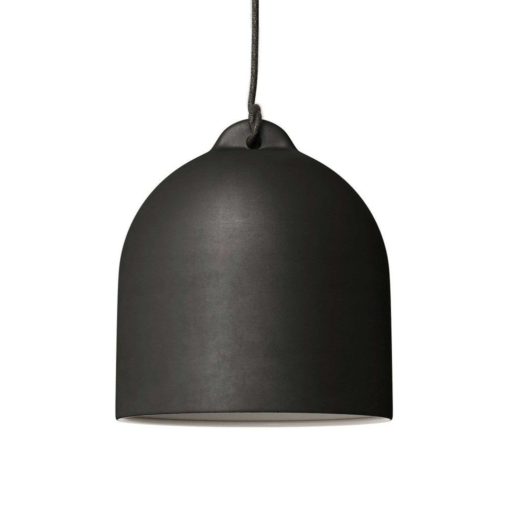 Suspended lamp with textile cable and ceramic Bell M lampshade - Made in Italy - Bulb included