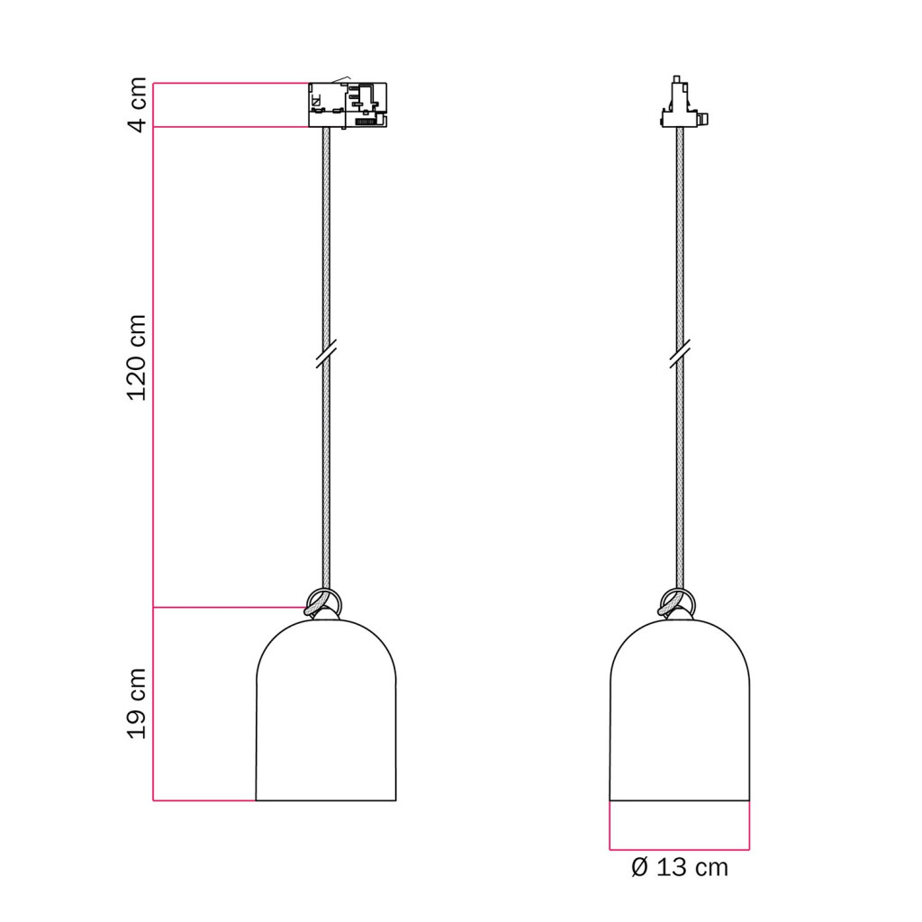 Rail-mounted lamp with ceramic mini Campana lampshade