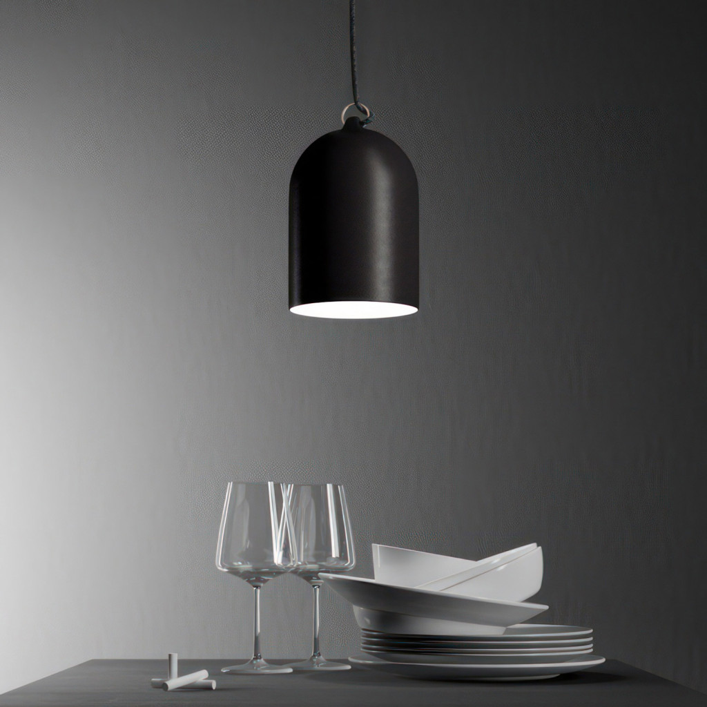 Suspended lamp with textile cable and lampshade Mini Bell XS ceramic lampshade - Made in Italy - Bulb included