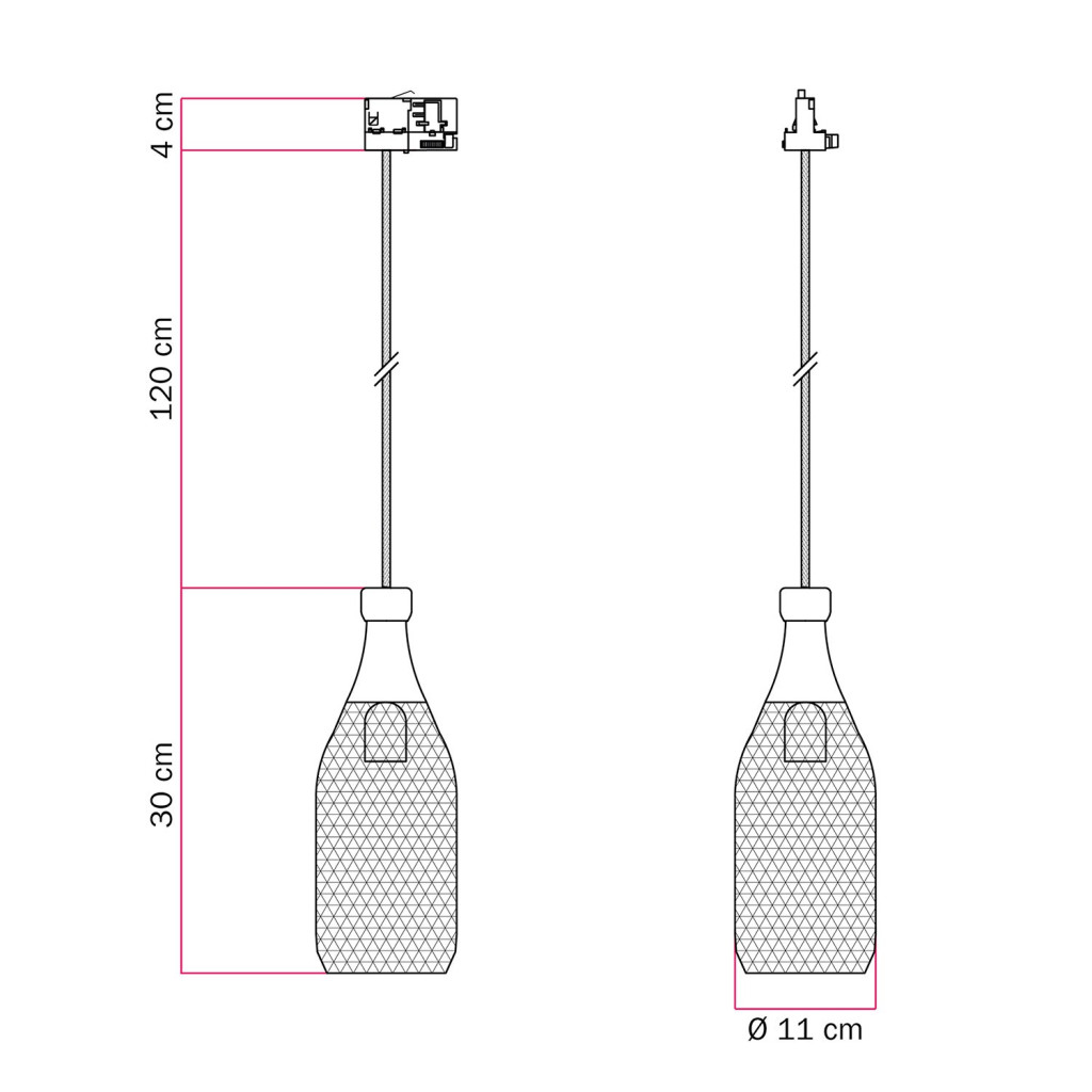 Suspended lamp Magnum bottle with shade for rail