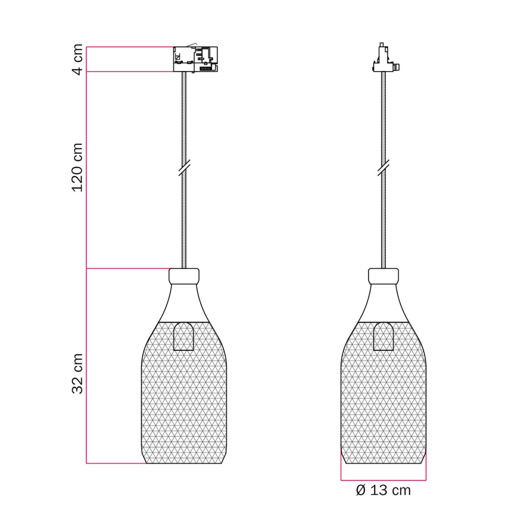 Suspended lamp Jéroboam bottle with shade on rail