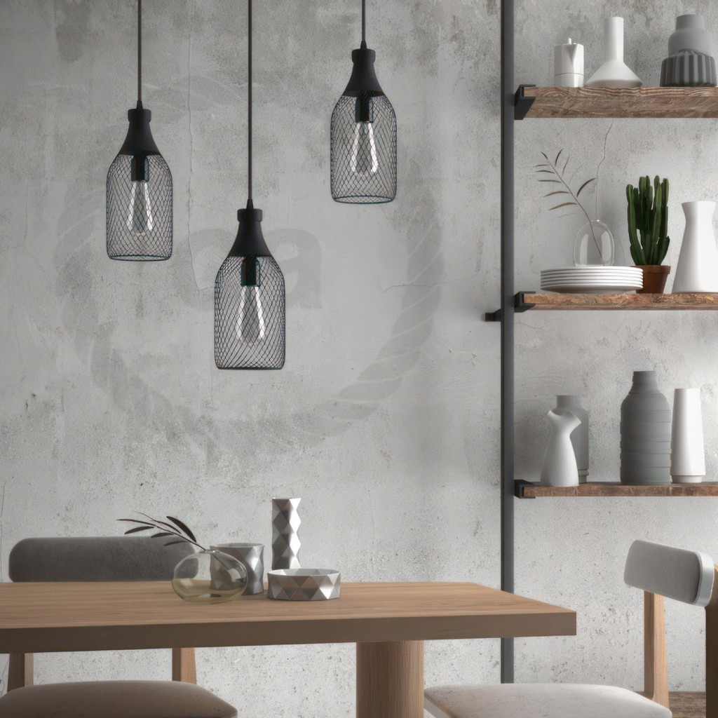 Suspended lamp with textile cable, Jeroboam bottle lampshade and metal details - Made in Italy - With bulb