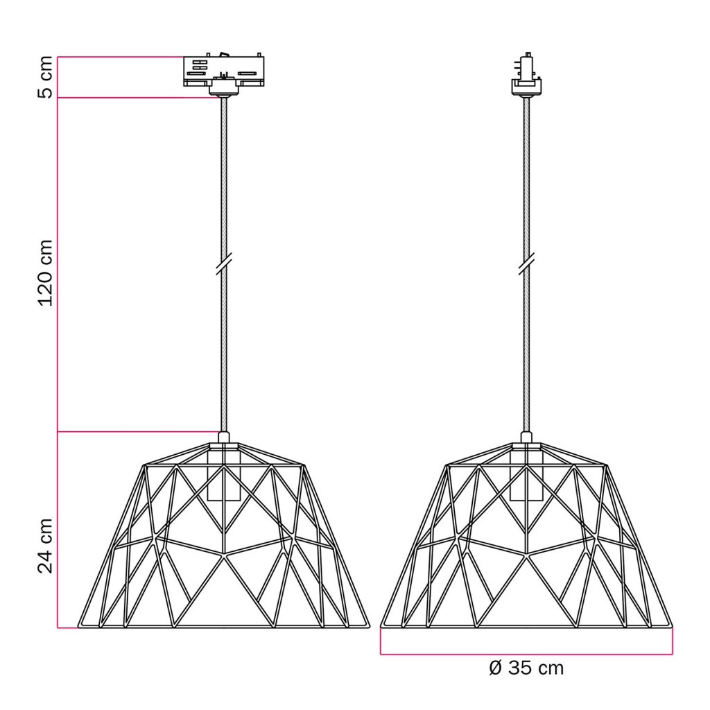 1 Dome painted metal shade in the selected design ø 350 mm H 240 mm with E27 lamp holder