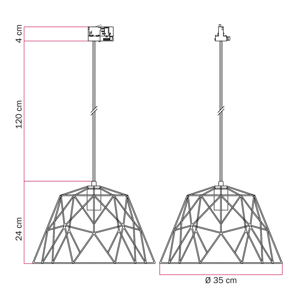 1 Dome painted metal shade in the selected design ø 350 mm H 240 mm with E27 lamp holder